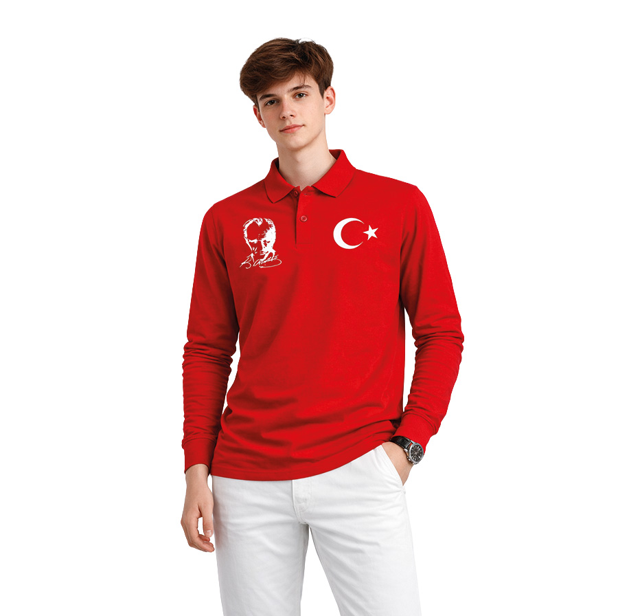 • Premium Atatürk Portresi Baskılı Unisex Polo Yaka Uzun Kol Tshirt